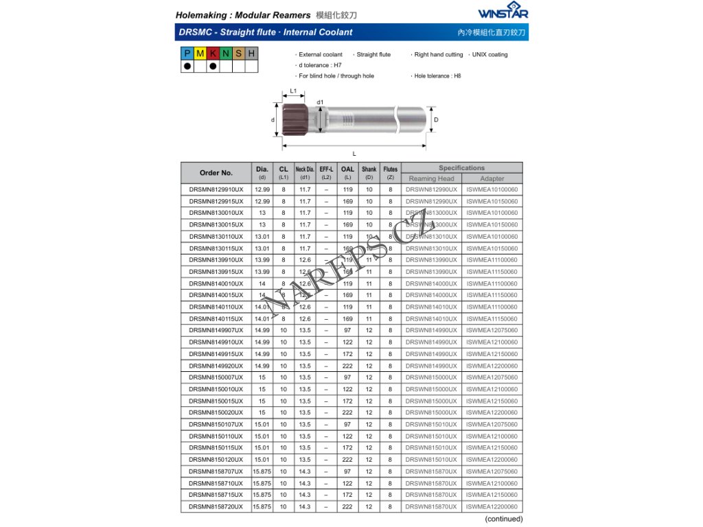 Karbidový výstružník s výměnnou hlavou DRSMN 16, H7 pro průch. i sl. díru