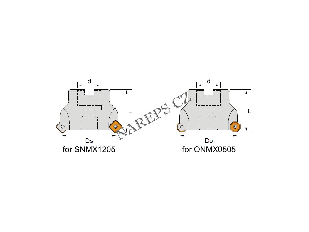 Plátková čelní fréza 45° pro destičky SNMX nebo ONMX.