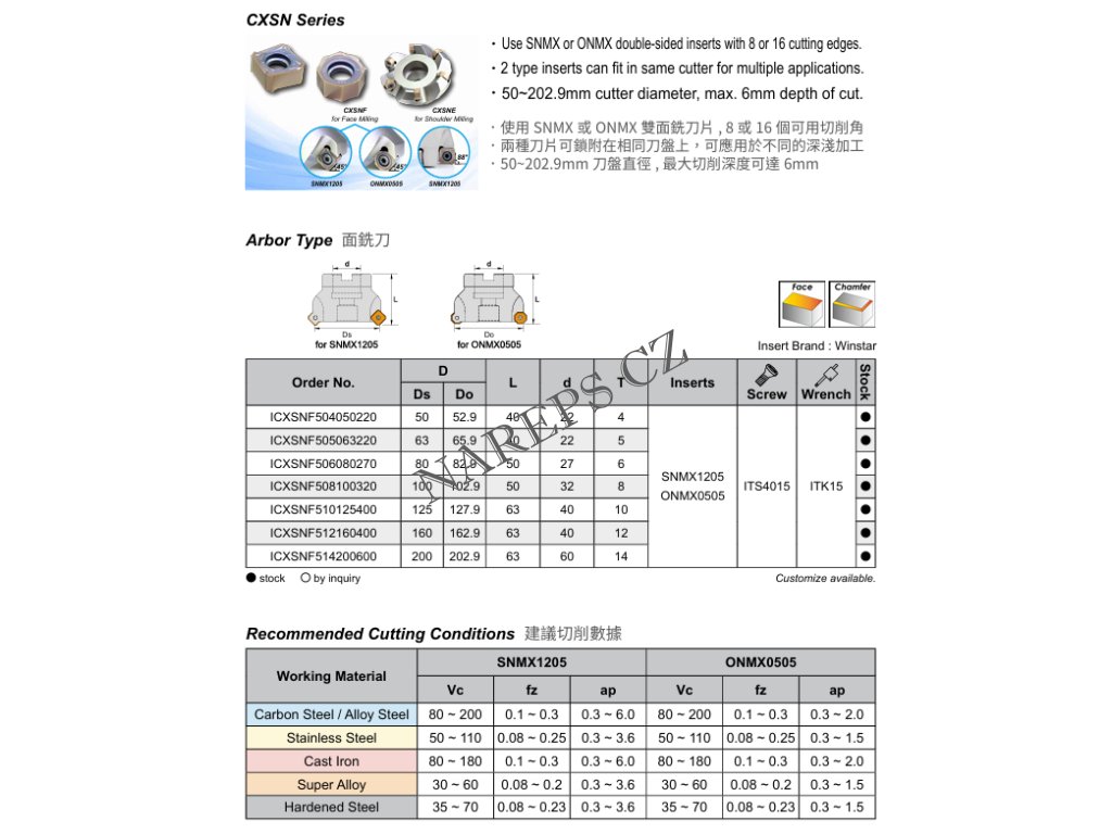 Plátková čelní fréza ICXSNF-D100*d32*8z pro destičky ONMX0505 nebo SNMX1205