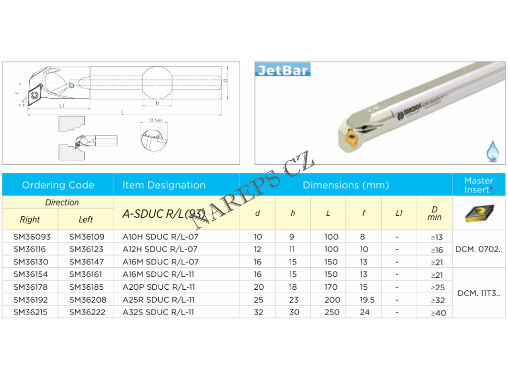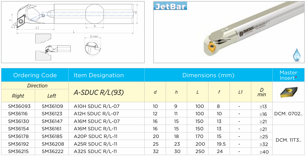 Soustružnický nůž A12H SDUCR-07 s chlazením pro destičky DCM. 0702.. (pravý)