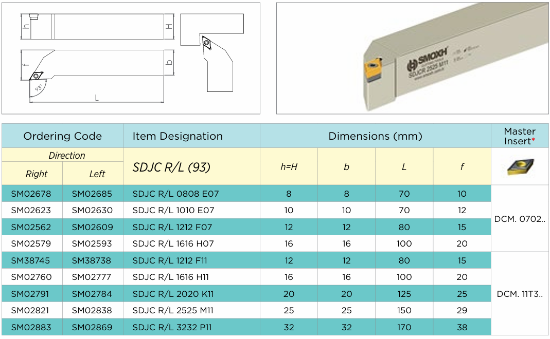 Soustružnický nůž SDJCR 1616 H07 pro destičky DCM. 0702..(pravý)