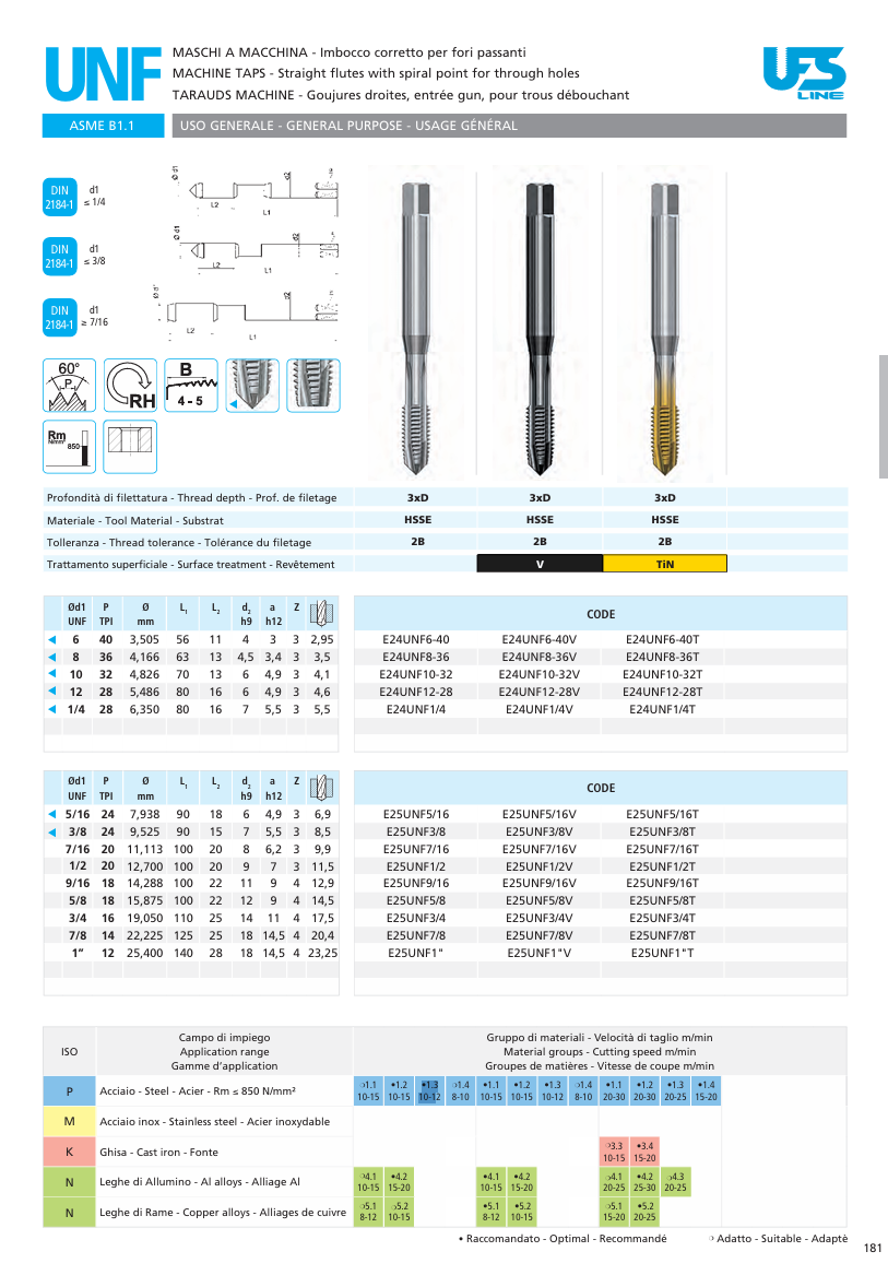 Strojní závitník pro průchozí díru s povrchem TIN UNF1" 3xD-HSSE 2B